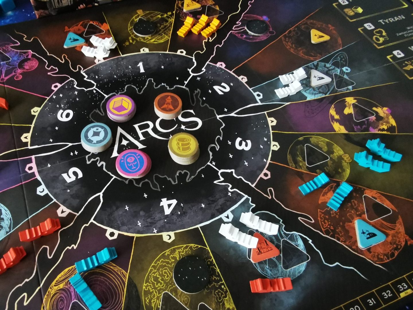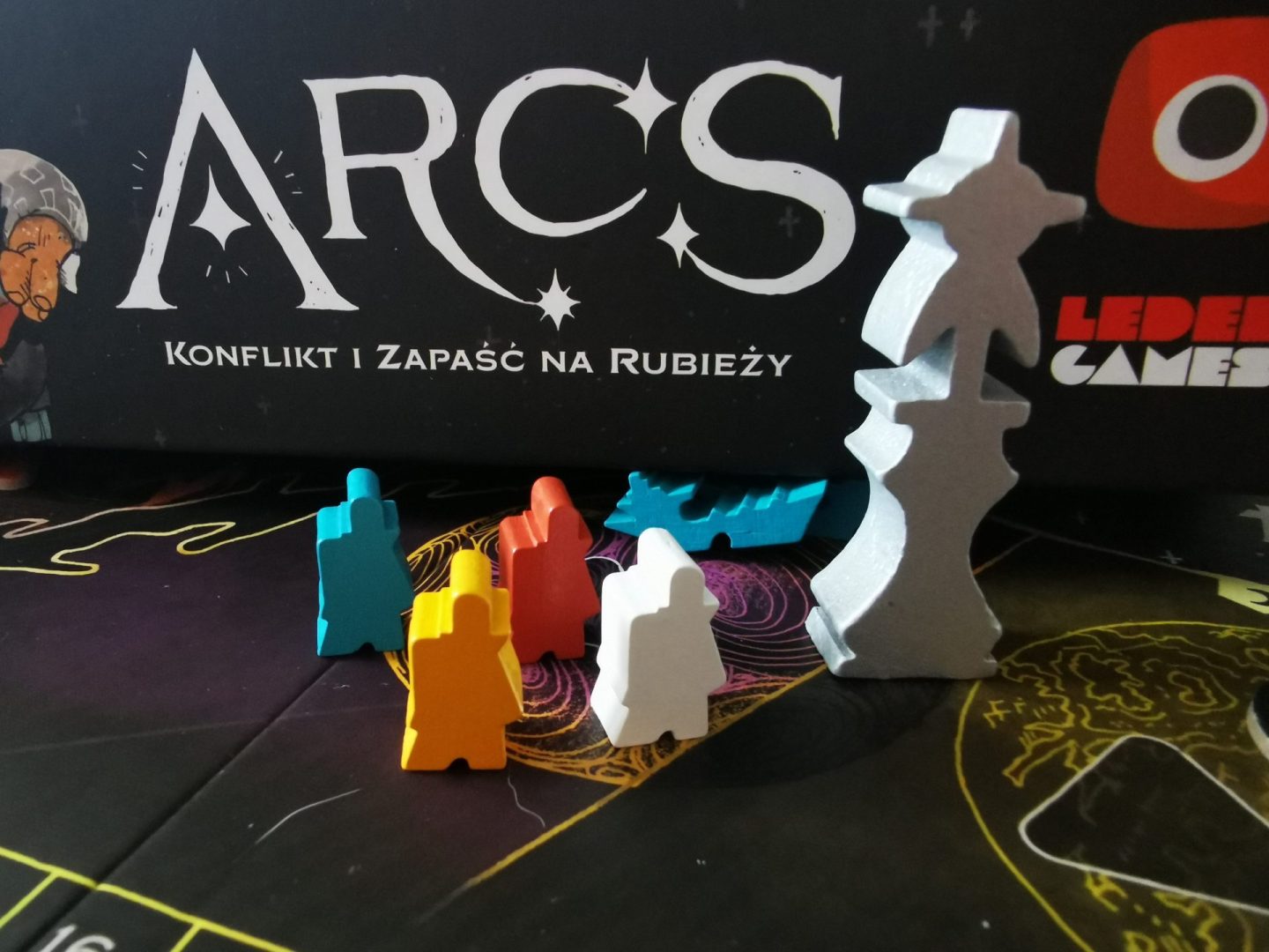 Całość rozgrywki trwa 3–5 rund w zależności od liczby graczy, a tura jednego gracza trwa kilkadziesiąt sekund, w których zdążymy swoje pomyśleć. Dzięki temu rozgrywka jest dynamiczna, ale nie pozbawiona odpowiedniej głębi. Najlepiej grało mi się w trzy osoby – pełno interakcji, jest nieco przestrzeni na rozbudowę, a i poblefować można. Gra nie ma trybu solo i szczerze, nie wyobrażam sobie tej gry bez interakcji z innymi graczami. Podoba mi się również regrywalność Arcs – jest tego od groma, a najlepsze, że nawet grając na takich samych ustawieniach i tym samym liderem partia może być zupełnie inna.