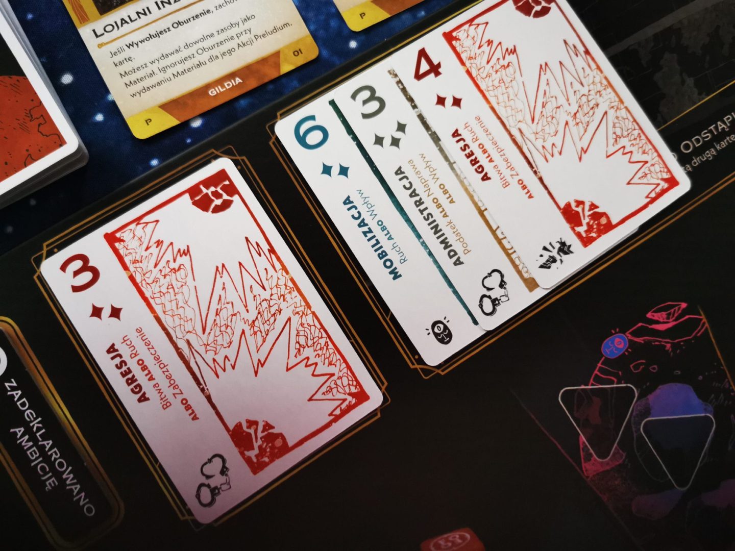 Jakie minusy ma Arcs? Na pewno podatność na losowość. Jak nie dostaniesz pasujących kart, to może nie być kolorowo, chociaż to kwestia rozgrywki, bo często nawet z beznadziejnej sytuacji da się wyjść z dwoma statkami zapasu. Jako że mamy wszechobecny konflikt, to brutalny start i zniszczenia na początku partii mogą być trudne do odrobienia w późniejszych etapach gry.