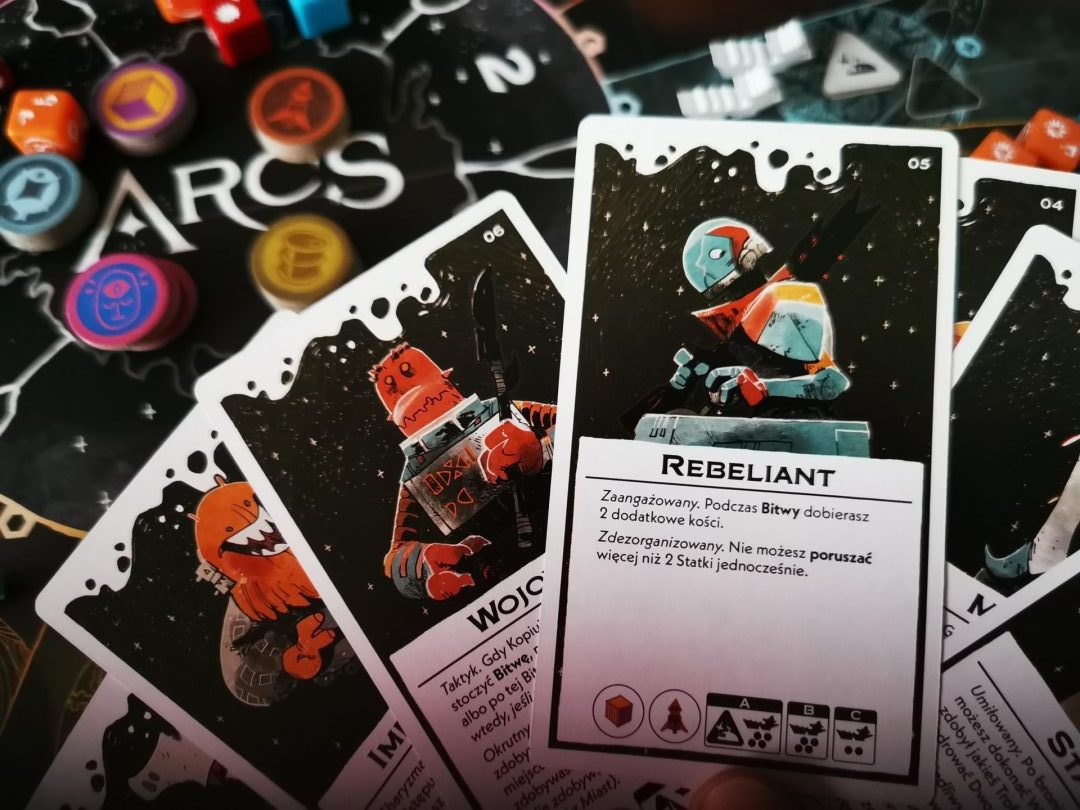 Arcs to gra, która nie boi się lecieć własną orbitą. Podczas gdy większość kosmicznych tytułów uderza w monumentalność i tony plastiku, Cole Wehrle i ekipa Leder Games zaproponowali coś znacznie bardziej kameralnego, a jednocześnie bardzo grywalnego. To gra, w której każda karta to decyzja, a każda tura może zakończyć się walką. Tu nie ma epickich starć – gra stawia na szybkość i dynamikę rozgrywki. I choć nie jest to tytuł dla każdego – bo wymaga ciągłej uwagi i dostosowywania się do sytuacji, zrozumienia trick-takingu i akceptacji, że nie zawsze masz pełną kontrolę nad wydarzeniami – to w odpowiednim gronie może rozbłysnąć.