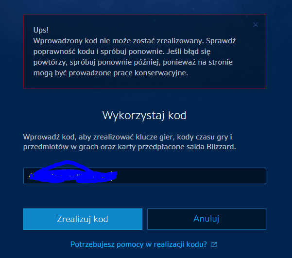 Kupiłem na tej platformie grę Overwatch w zwykłej edycji. Akurat było tutaj najtaniej (o cenach napiszę pod koniec tekstu) więc złożyłem zakup. Szybko się okazało, bo już przy aktywacji na platformie battle.net, że klucz nie działa. I nie to że jest zużyty, miał absolutnie inną strukturę niż wszystkie klucze sprzedawane na battle.net, o czym informował komunikat na platformie. Klucz na zdjęciu został zakryty, ponieważ ciągle trwa reklamacja i moja walka. Zakup odbył się dnia 22 stycznia i reklamacja nie została do dzisiaj rozwiązana (3.02.2018).