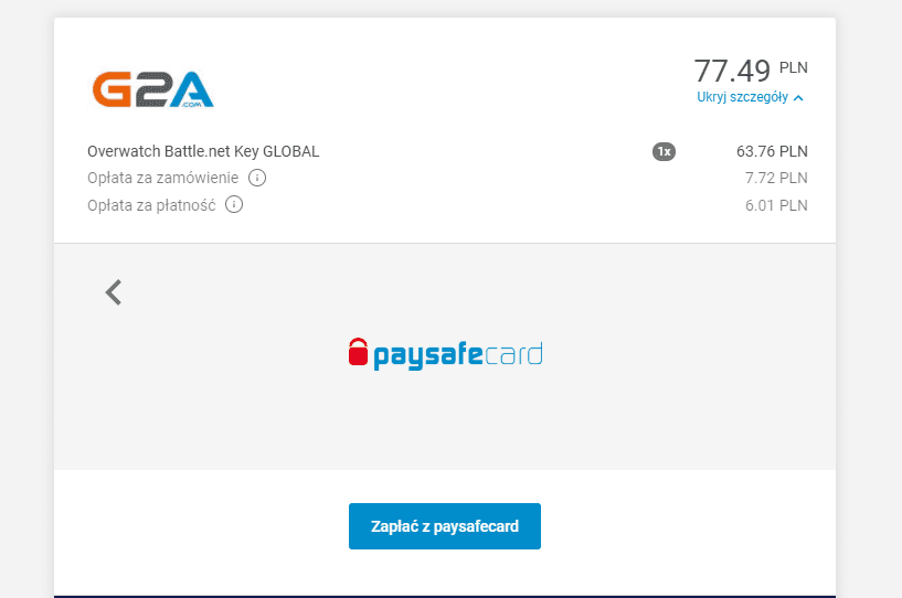 Oraz cena faktyczna którą widzimy w koszyku po wybraniu pierwszej formy płatności, czyli Pay Safe Card: