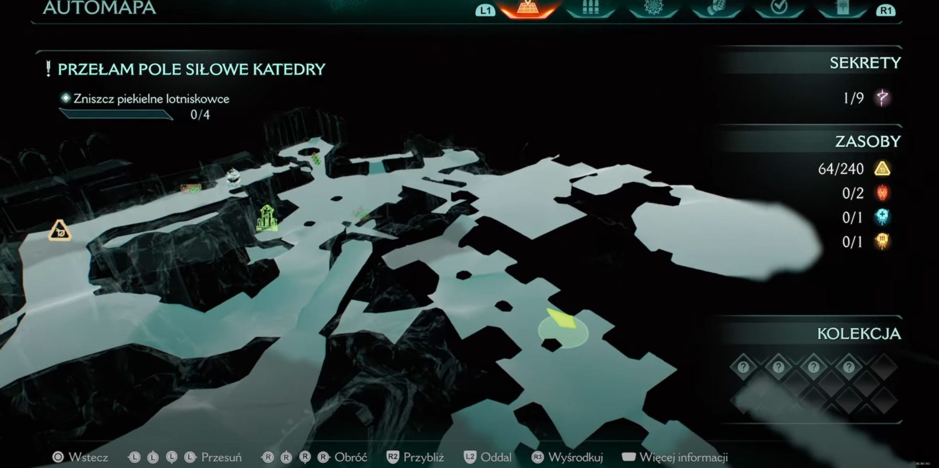 Chociaż mapy w Doom: The Dark Ages są dość przejrzyste i prowadzą gracza w sposób liniowy, nawyk częstego sprawdzania mapy to jeden z najlepszych nawyków, jakie możesz wyrobić już od początku gry. Automapa pokazuje nie tylko główne cele misji, ale także lokalizacje kolekcjonerskich przedmiotów, sekretów oraz rzadkich zasobów – pod warunkiem, że najpierw dotrzesz w ich pobliże i odkryjesz daną część mapy. Dlatego warto eksplorować każdą nową przestrzeń dokładnie, nawet jeśli wydaje się mało istotna.