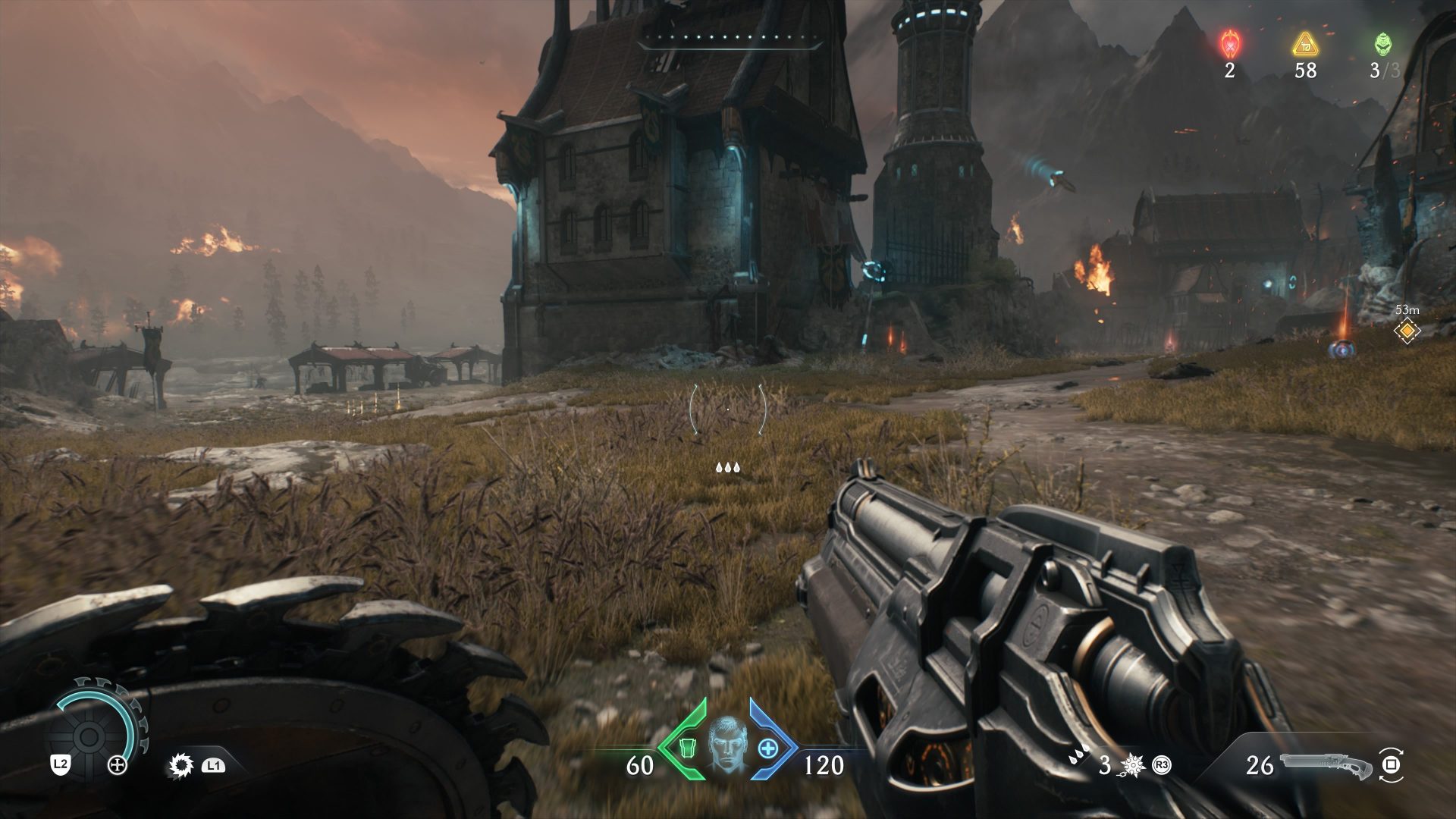 Każda mapa w Doom: The Dark Ages to inna historia, którą gra chce opowiedzieć. Oprócz już wcześniej wspomnianych specjalnych map dla smoków czy mechów, przyjdzie nam na piechotę zwiedzać olbrzymie katedry, a także zwykłe, opuszczone wioski. W tle dużo się dzieje, czasami zobaczymy walkę przyjaznego robota z wrogim demonem, a innym razem przelatujący demoniczny lotniskowiec. Mapy są duże i co ciekawe, każda z nich ma od razu pokazane na niej sekrety, przez co ich odnajdywanie nie daje takiej zabawy, jak w poprzednich odsłonach gry. Oczywiście nawet ze znacznikiem, niektóre z sekretów mogą okazać się trudne do odnalezienia, ale mimo to, nie jestem do końca przekonany do takiego rozwiązania, gdzie wszystkie sekrety są od razu wskazane znakiem zapytania na mapie.