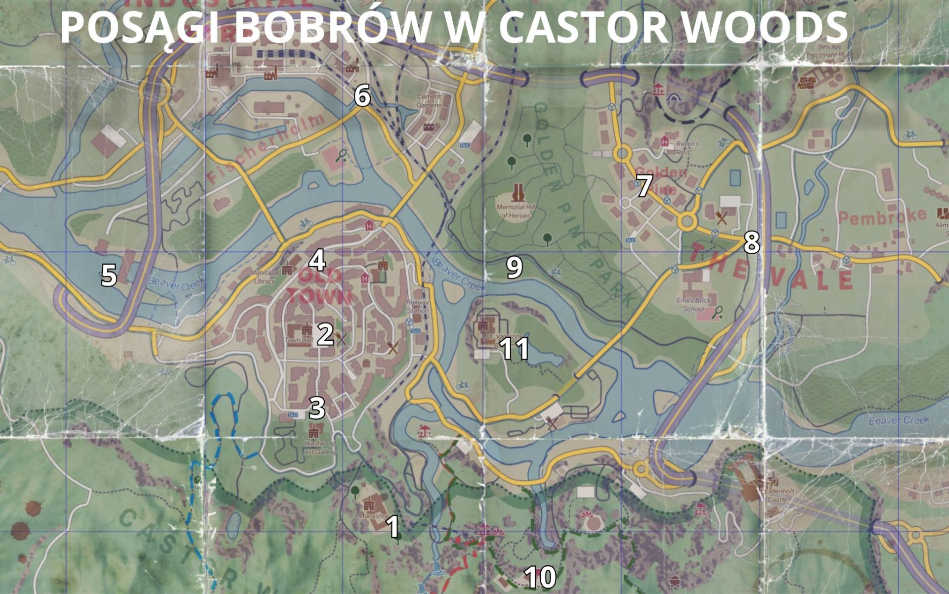 Aby odblokować to osiągnięcie, musisz odnaleźć wszystkie ukryte posągi Bobrów Castor, rozsiane po całej mapie. Poniżej znajdziesz lokalizacje każdego z nich wraz z krótkim opisem, który pomoże Ci łatwo je odnaleźć.