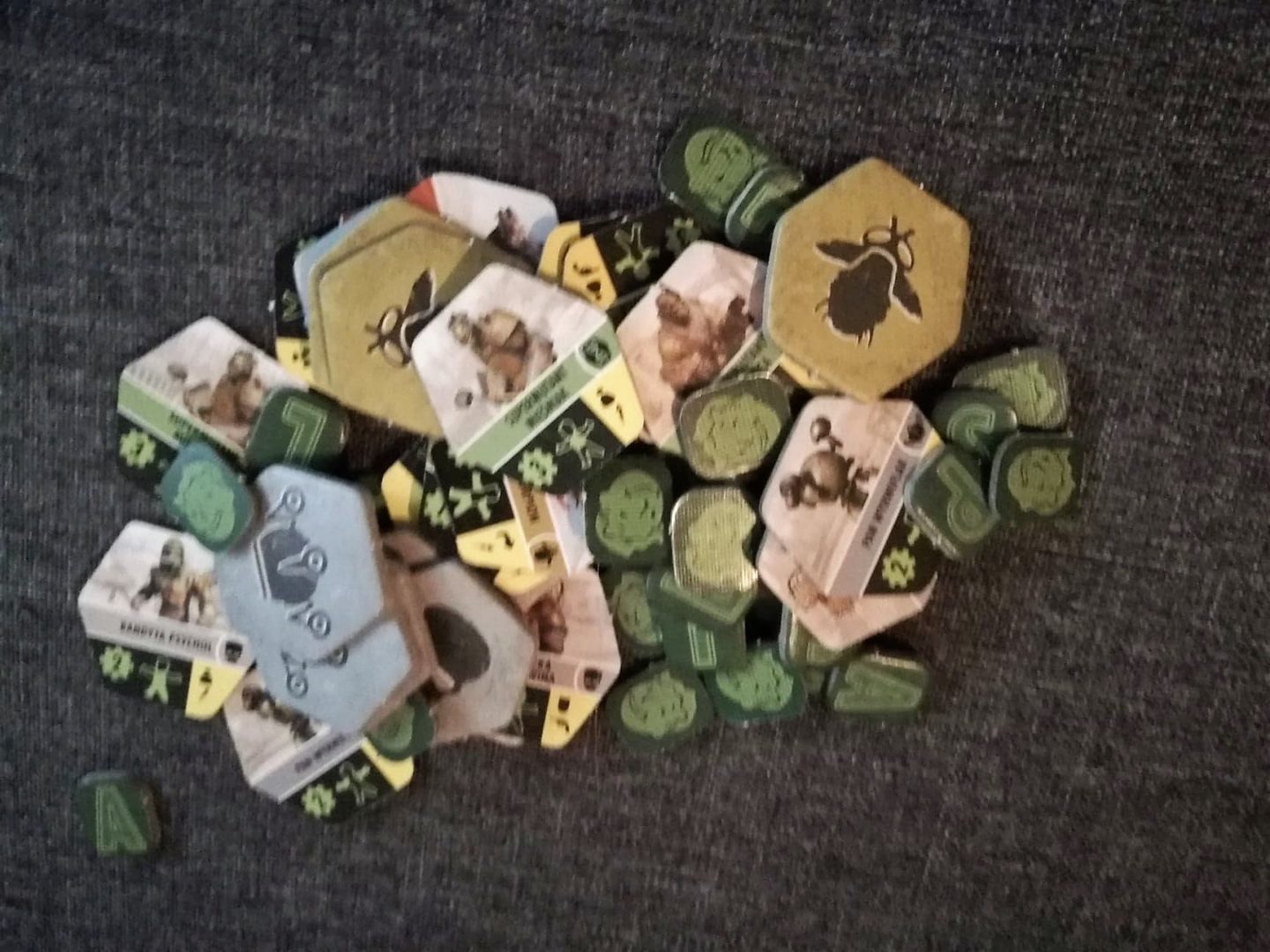 Wykonanie jest naprawdę bardzo fajne i nie mam tutaj nic do zarzucenia. No właściwie mam jedną rzecz – brakuje kart pomocy graczy. Mimo że zasady nie są trudne i akcje polegają w głównej mierze na chodzeniu, eksploracji, atakowaniu, robieniu spotkań i spaniu aby regenerować punkty życia, to jednak drobne karty ze ściągami bardzo by ułatwiły wprowadzanie nowych graczy bez przypominania o możliwych akcjach i wszystkich ograniczeniach oraz możliwościach. Zwłaszcza opisanie walk oraz symboli na dodatkowych kartach byłoby przydatne i wykluczyłoby teksty w stylu „przypomnij mi co oznaczała błyskawica na żetonie potwora”.