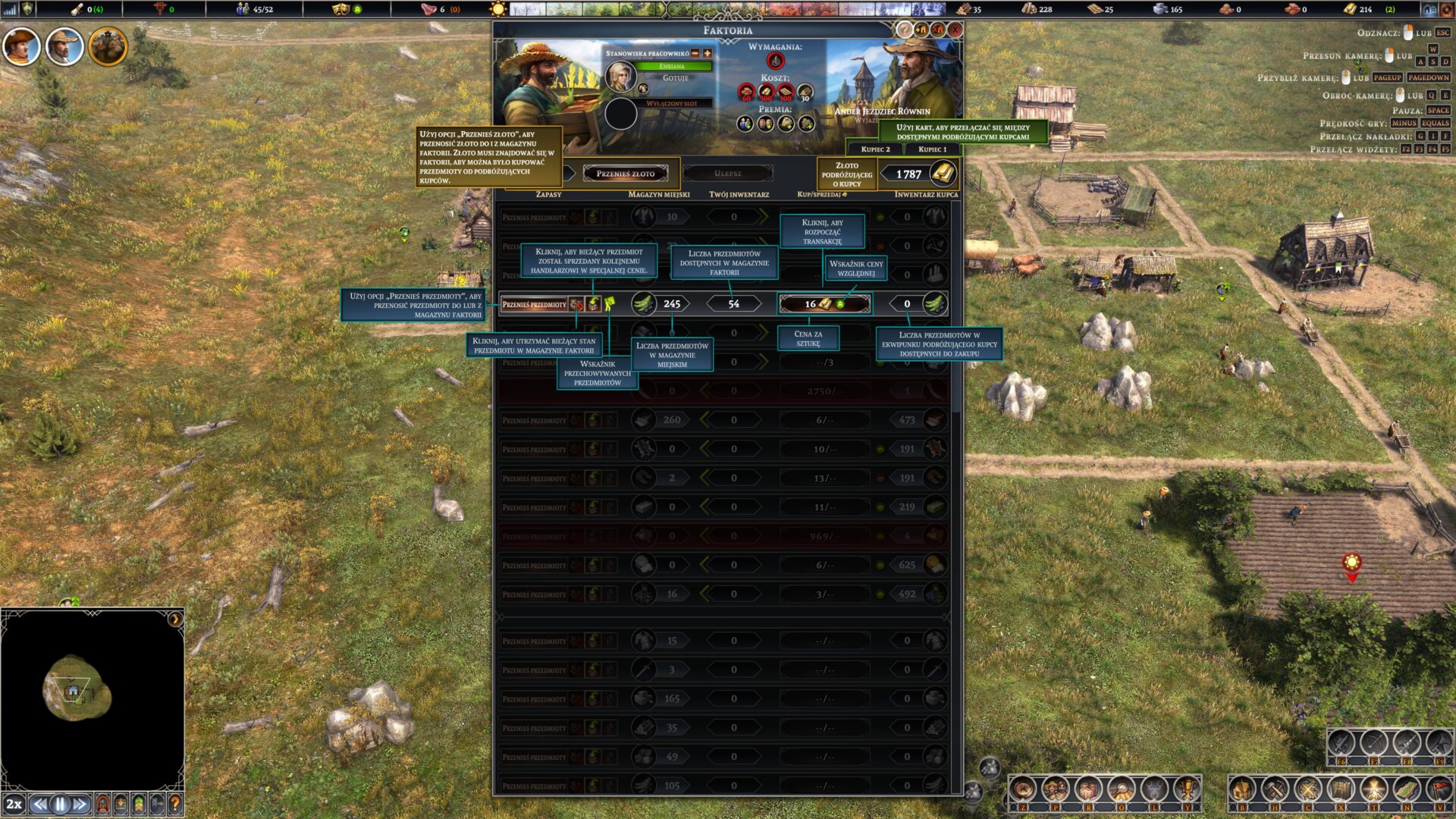 To samo dotyczy magazynowania produktów. Nie jest problemem to, że zasoby muszą przemieszczać się między budynkami wytwórczymi, a dobra optymalizacja dróg pomaga w pracy naszym robotnikom. Problem jednak przychodzi z handlem. Każdy handlarz, których przyjeżdża dwóch co roku, ma tylko ograniczone zasoby do sprzedaży oraz zainteresowany jest konkretnymi zasobami. Kiedy więc już taki handlarz przyjedzie, to ręcznie musimy przenosić zasoby z naszego głównego magazynu do faktorii handlowej i czekać, aż one się tam pojawią, by wreszcie je sprzedać. To samo dotyczy złota – jeżeli złoto jest w banku lub u sołtysa w centrum miasta, to musimy je przenieść do faktorii, by coś kupić. Dlaczego nie jest to zautomatyzowane, tak jak zwykła produkcja przedmiotów? Wyobrażacie sobie ręczne przenoszenie mąki do piekarni co 5 minut? Dlaczego nie mogę od razu zlecić sprzedaży produktów albo kupna przedmiotów u handlarza, a pracownicy już sobie w tym czasie sami przeniosą przedmioty? Dlaczego muszę z niecierpliwością czekać na koniec dostawy, by zdążyć, zanim kupiec odjedzie? Bardzo nieprzemyślany system, z którym musimy się męczyć przez całą grę.