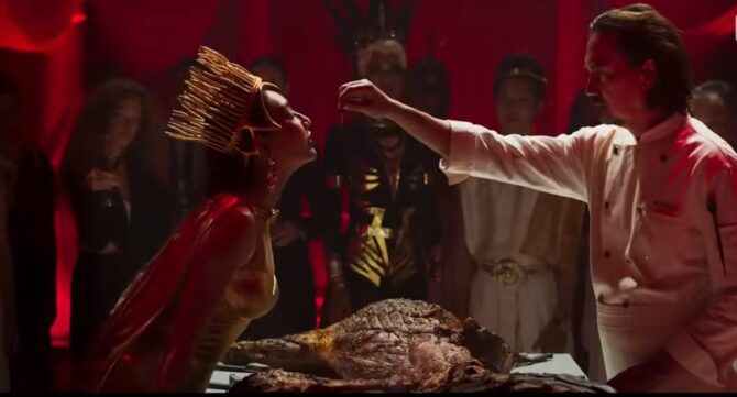 Fabuła jest dość niespotykana i potrafi przyciągnąć uwagę widza. Pod względem wizualnym film jest bezbłędny. Scenki z gotowania są nakręcone w taki sposób, żeby widz czuł się jakby brał udział w całym procesie tworzenia potrawy. Z ekranu wręcz bucha ogień spod woka a nóż prawie sam układa się do ręki przy krojeniu warzyw. Problemem jest jednak monotonność tych scen. Według mnie podobne ujęcia zbyt często się powtarzają, przez co robi się nudnawo, jakby Hunger miałby się nigdy nie zakończyć. Z drugiej strony, sceny degustacji są bliskie fabule i doskonale oddają charakter „złego” kucharza. Paul gardzi swoimi klientami i da się to wyczuć kiedy jego goście obżerają się przyrządzonymi przez niego potrawami. Można to zobaczyć, kiedy szef obserwuje swoich gości, kiedy podczas kolacji „Ciało i krew” każdemu z jedzących, czerwony sos spływa po bokach ust. Goście pożerają grillowane mięso w zniechęcający sposób, który dodaje niesmaku tej scenie. Mimo, że ci wpływowi politycy nigdy w życiu nie zaznali głodu, objadają się żarłocznie, niczym głodzona zwierzyna.