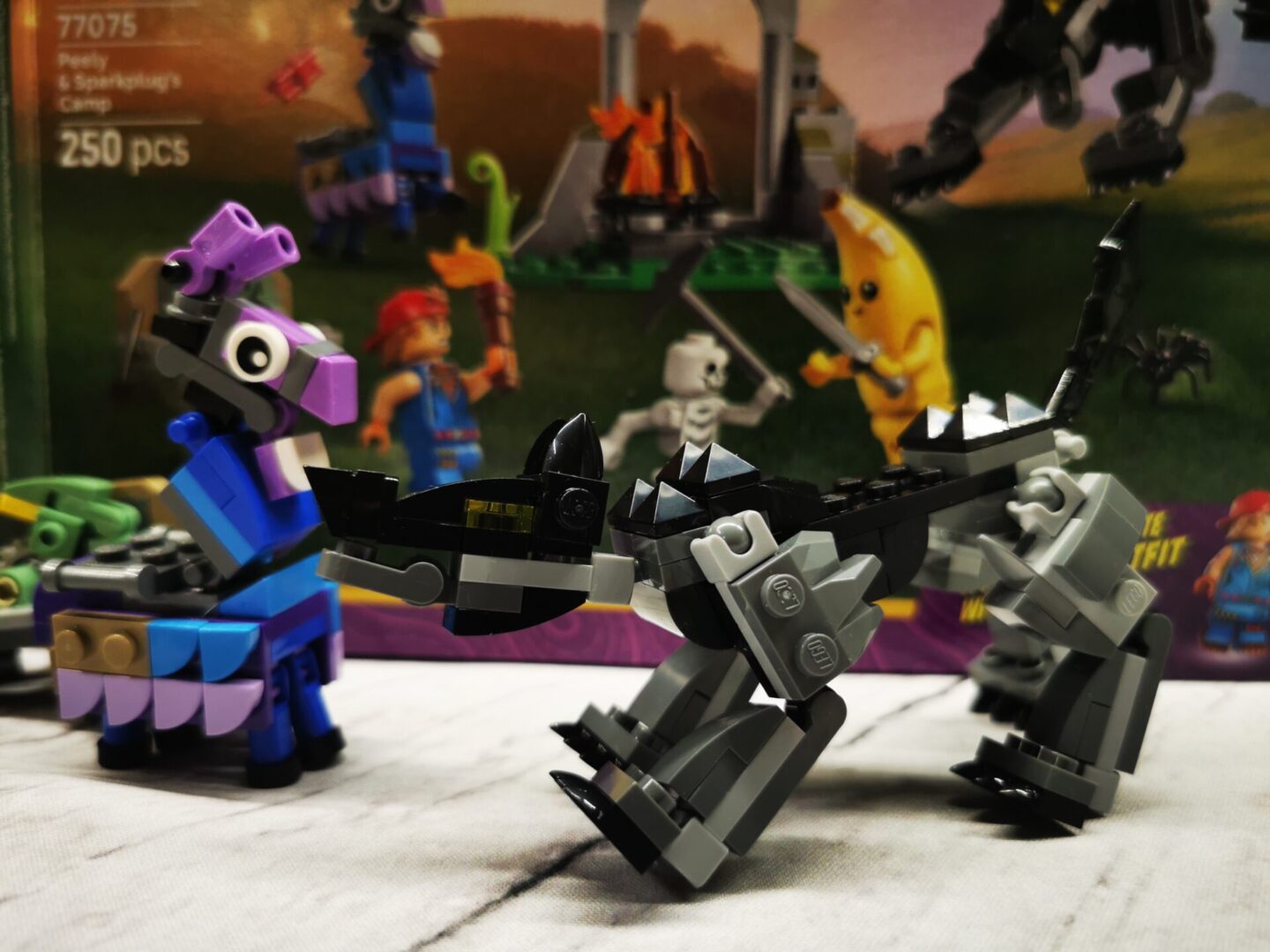 Świetnie prezentuje się też aspekt zabawowy – nie spodziewałem się, że tyle frajdy dzieciakom da tak mały zestaw. Figurki lamy oraz wilka można ustawiać i odgrywać małe scenki. Sam obóz też świetnie się sprawdza podczas wspólnej zabawy. Dla tych, którzy mają inne zestawy z LEGO Fortnite — świetny dodatek. Dla tych, którzy nie mają, a chcą zacząć zbieranie – kandydat warty rozważenia.