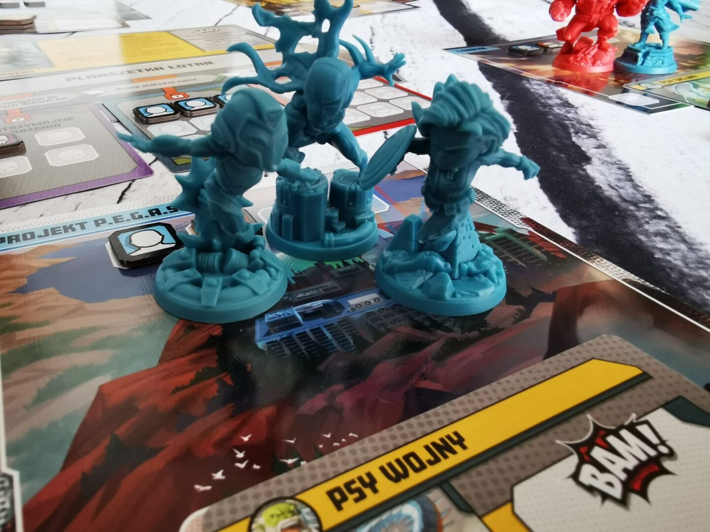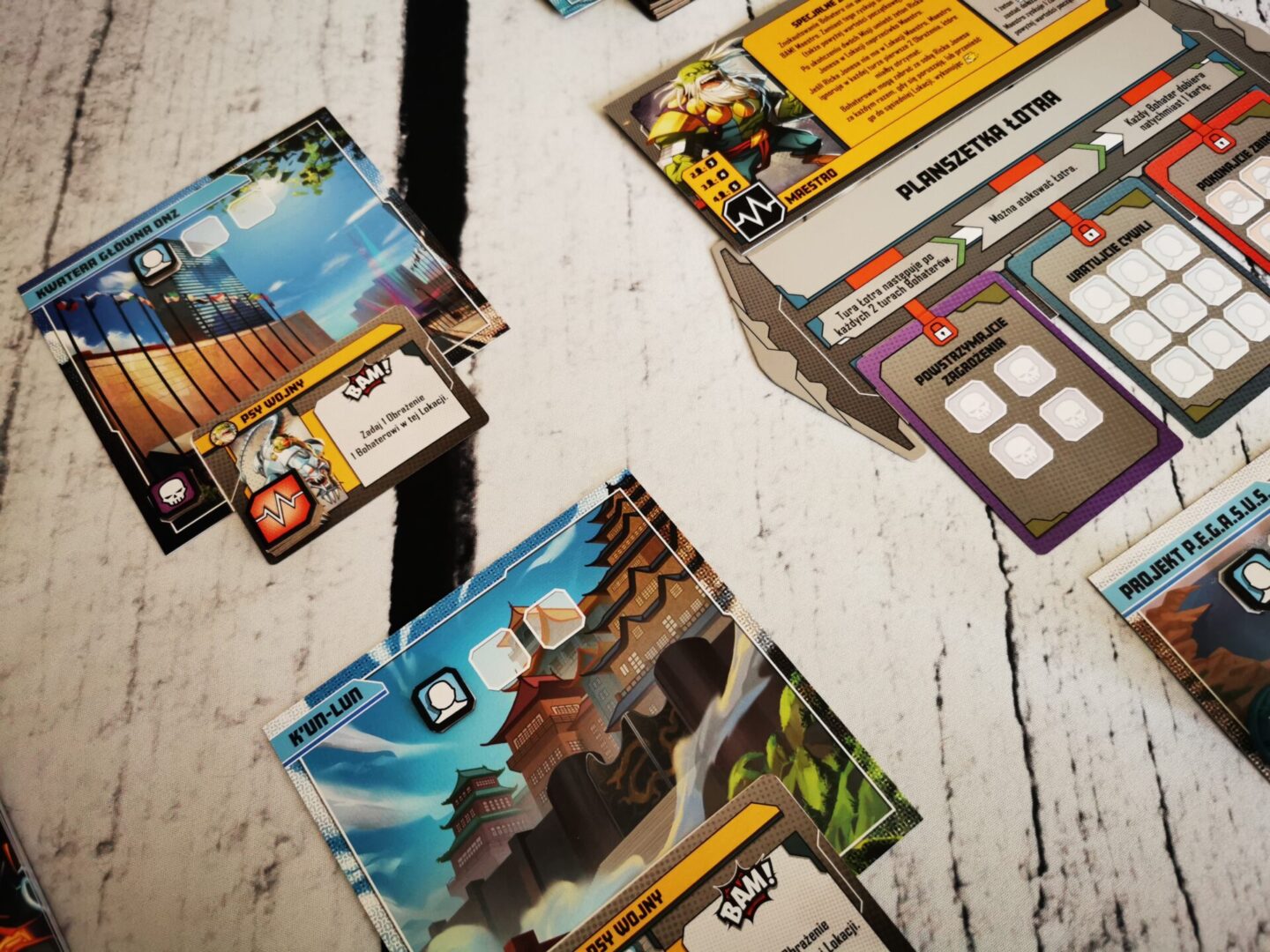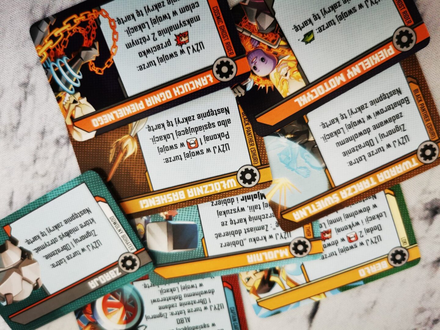 Mocną stroną nowego pudła Marvel United: Multiverse są łotrowie. W pudełku mamy czterech, z czego szczególnie dobrze bawiłem się przy Doktorze Doomie i Maestro. Ogólnie mam wrażenie, że z pudełka na pudełko poziom trudności jest śrubowany – i bardzo dobrze, w końcu bohaterowie też są mocni i mają się bohatersko zachowywać. Łotrowie jak to łotrowie, będą nam przeszkadzać w różnoraki sposób. Taki Maestro rozdaje obrażenia na prawo i lewo z prędkością karabinu maszynowego.