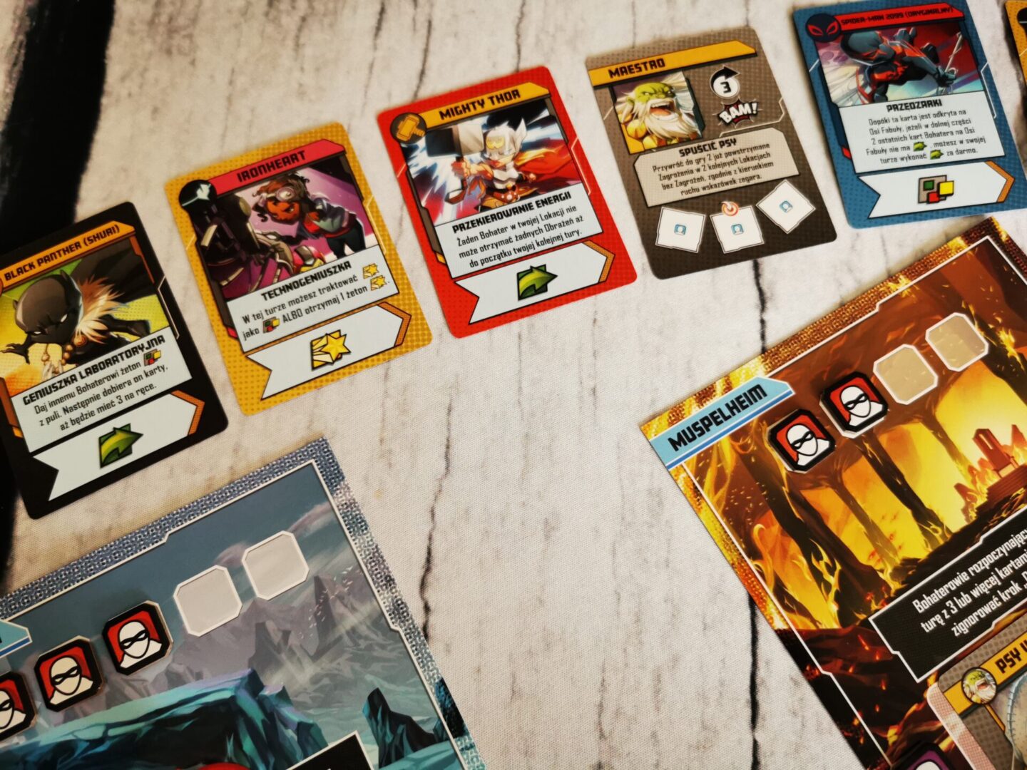 Jak grać w Marvel United? Rozgrywka jest prosta, ale nie prostacka i pozwala przyjemnie pokombinować. Wybieramy ulubioną postać reprezentowaną przez świetne figurki w stylu chibi, bierzemy jej talię kart oraz decydujemy się, komu dziś skopiemy cztery litery. Wszystko opiera się na zagrywaniu kart, które dają nam akcje – ruch, atak, heroiczne zachowanie. Naszym celem jest pokonanie tego złego, po drodze realizując proste misje. Gra pomimo prostoty jest niezwykle satysfakcjonująca i świetnie łączy bardziej doświadczonych graczy z dzieciakami, które dopiero wchodzą w świat poważnych planszówek. Sam zbieram kolekcję Marvel United, żeby kiedyś zagrać z synem. To dobry tytuł, żeby pokazać, że planszówki są fajne i można się przy nich dobrze bawić.