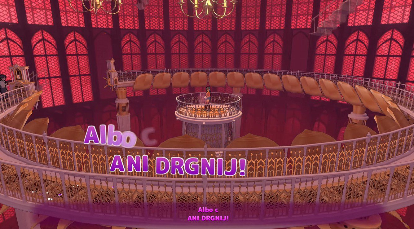 Po udanej ucieczce wskoczysz na kładkę i przejdziesz przez drzwi prowadzące do nowego obszaru. Tutaj czekają na Ciebie trzy wypaczone „gry” organizowane przez Mitę. Pierwsza z nich przypomina muzyczne krzesła. Twoim zadaniem jest poruszanie się do przodu, gdy gra muzyka, i natychmiastowe zatrzymanie się, gdy ucichnie. Staraj się dotrzeć do dźwigni i pociągnąć ją klawiszem E, zanim muzyka się skończy.