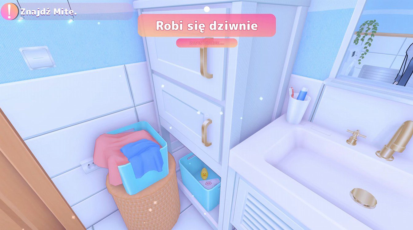 Po powrocie do kuchni i oddaniu nożyczek Mita usiądzie do kolacji i zapyta, czy chcesz dodać sos do jedzenia. Wybranie tej opcji odblokowuje osiągnięcie Delicious Love. Przed samą kolacją możesz jeszcze porozmawiać z Mitą – jeśli zaglądałeś do wentylacji, pojawi się dodatkowa linia dialogowa. Po posiłku odnieś naczynia do zlewu. W tym momencie postać zacznie „glitchować”, a Mita zaprowadzi Cię do łazienki. Przytrzymaj klawisz W, aby za nią podążyć, a następnie weź podane przez nią tabletki.