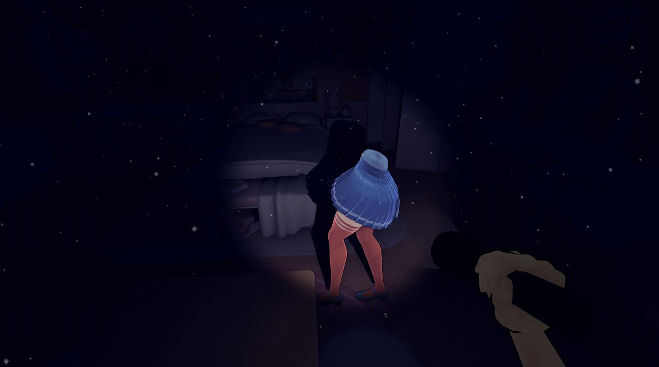 Po serii przerażających wydarzeń z udziałem Mity wyjdź z łazienki i zauważysz, że drzwi do kuchni są otwarte. Wejdź do środka, lecz Mita zniknie. Wróć do salonu – na ścianach pojawią się napisy nakazujące Ci ją odnaleźć. Ponownie zajrzyj do kuchni, gdzie zobaczysz Mitę stojącą za blatem, odwróconą plecami. Spojrzenie w stronę drzwi wywoła krótki jumpscare.