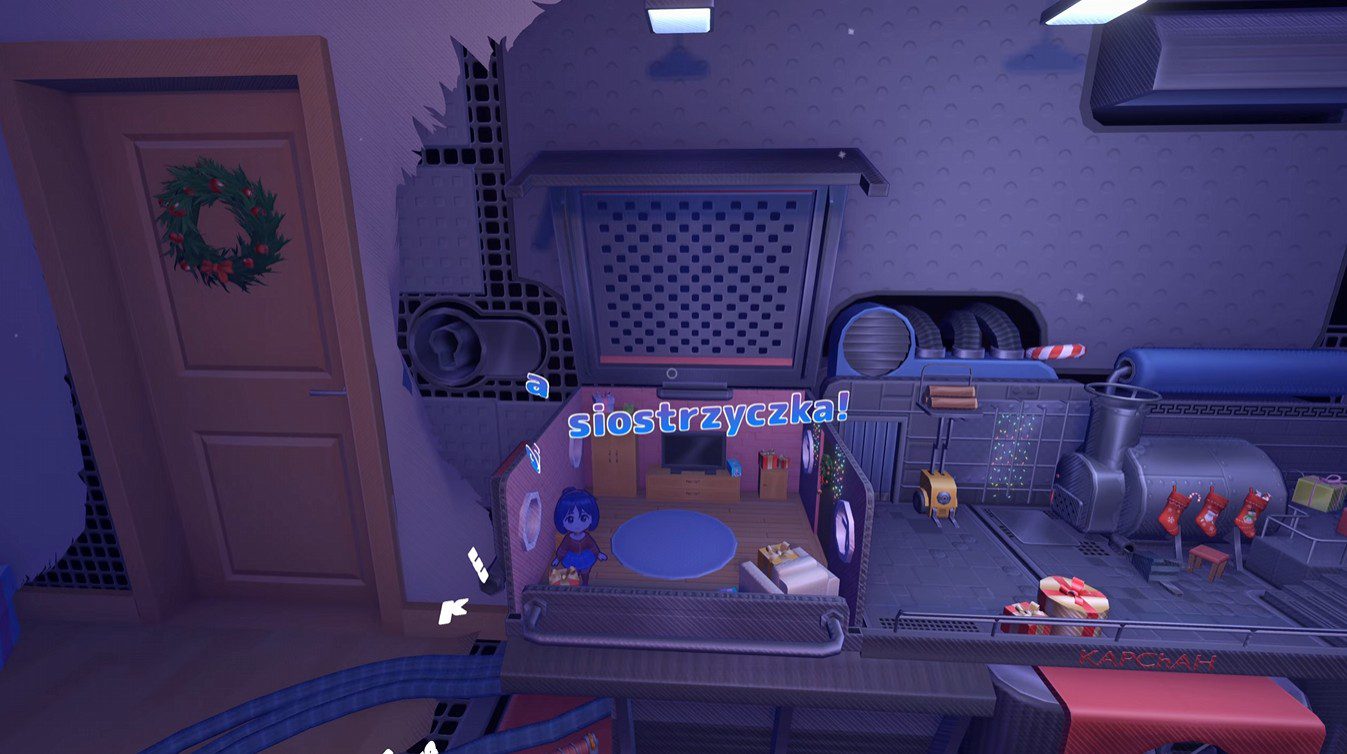 Po przestawieniu szafy w pokoju Mity i zakończeniu dnia otrzymasz możliwość wręczenia jej prezentu. Następnie zostaniesz przeniesiony do wnętrza gry. Tam skieruj się prosto do drzwi sypialni, gdzie po prawej stronie znajdziesz portal. Aby go aktywować, musisz zebrać trzy przedmioty: łuk, ołówek i łyżkę, rozmieszczone w łazience, sypialni i kuchni. Po zeskanowaniu ich na konsoli portalowej i uruchomieniu zasilania nastąpi kolejny etap zagadki.