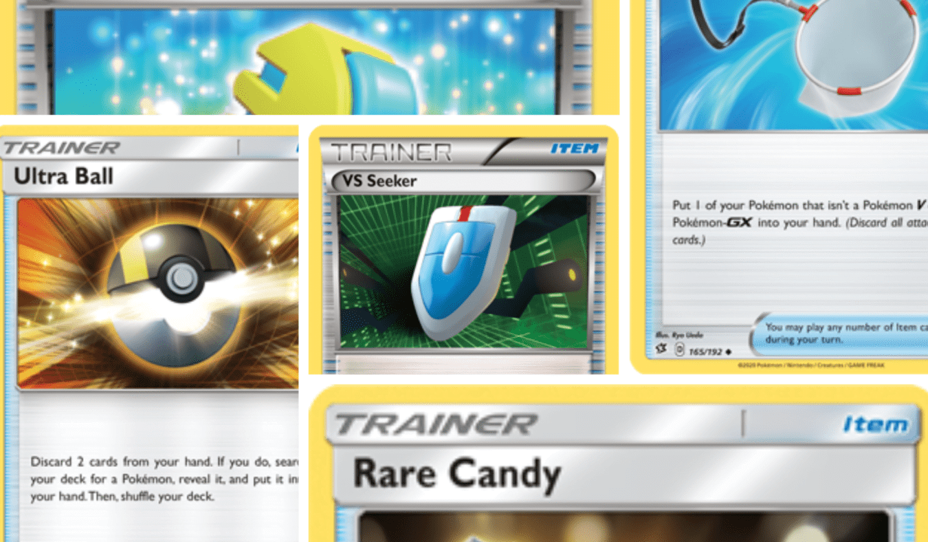 W poradniku o budowaniu silnej talii w Pokemon TCG pisaliśmy, że w swoim zestawie warto jest mieć około 30 kart Trenerów, z czego sporą cześć mogą stanowić Item Cards. Przede wszystkim, można ich zagrać w swojej turze więcej niż jedną, czyli zupełnie inaczej niż w przypadku Supporterów. Karty przedmiotów mogą być używane do różnych zadań – w tej samej turze możesz użyć Ultra Ball i Quick Ball (aby szukać Pokemonów), Cross Switcher i Lost Vacuum (aby nieco poprzeszkadzać przeciwnikowi) oraz Scoop Up Net (aby zresetować własnego Pokemona).