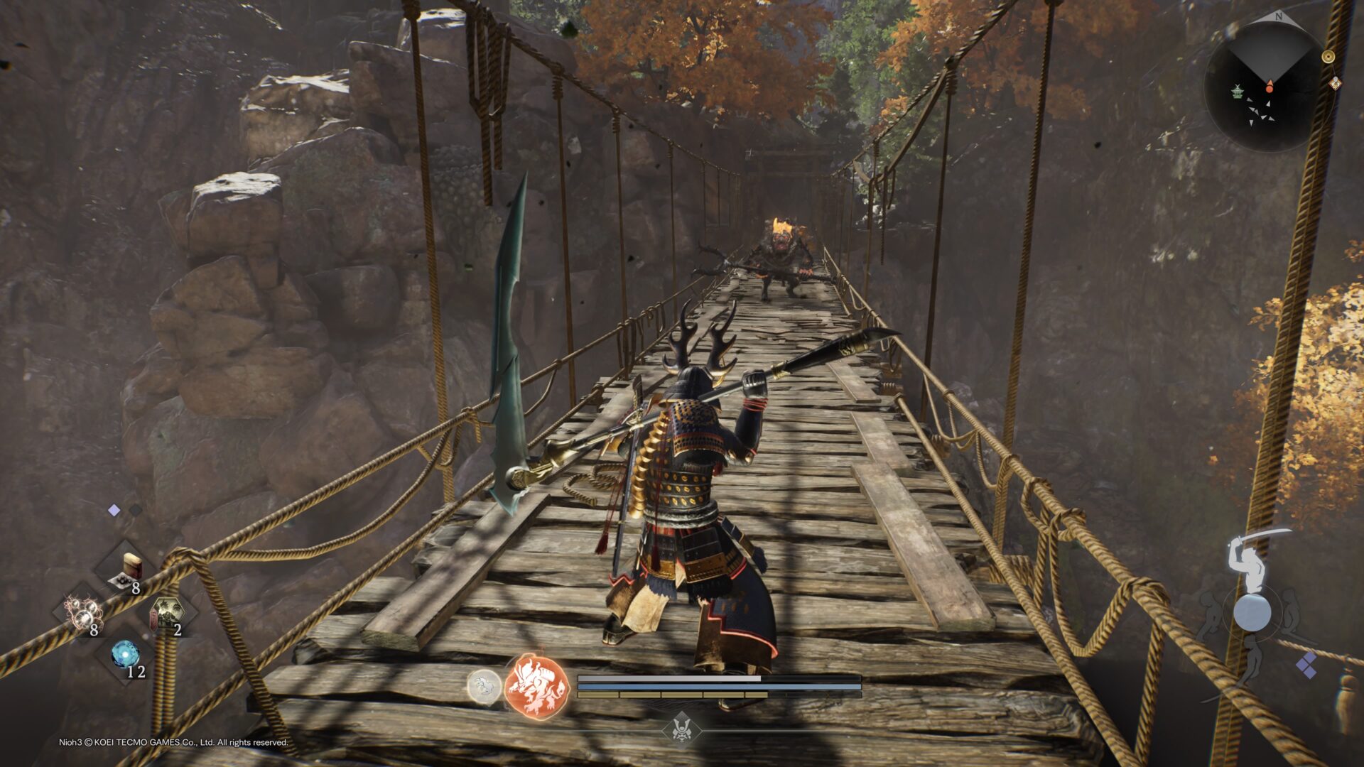 Zamiast Ki Pulse masz tutaj Mist: po ataku możesz wykonać szybki unik w dowolnym kierunku bez kosztu Ki. To daje ogromną płynność i pomaga wychodzić z kłopotów, ale jest też cena: w tym stylu nie odzyskujesz Ki „trikiem” jak u samuraja i nie oczyścisz Yokai Realm Ki Pulsem. Dlatego ninja najlepiej działa jako narzędzie taktyczne: wejść, zrobić robotę, wyjść, a gdy chcesz grać dłuższą wymianę – wrócić do samuraja.