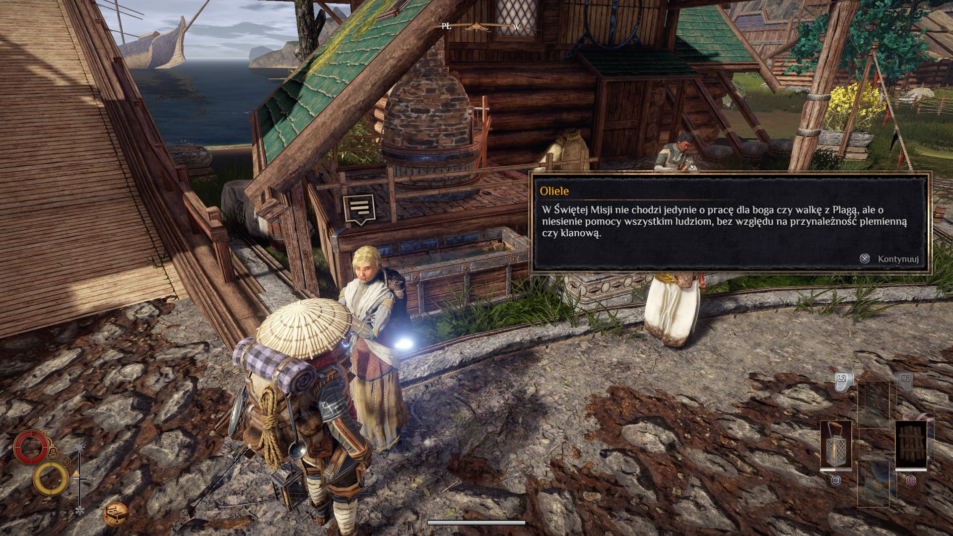 Zacznijmy od tego, że Outward: Definitive Edition ogrywałem na konsoli Playstation 5. Jest to trzecio osobowa gra survivalowa z elementami RPG. Niestety nie odwrotnie, gdyż największy nacisk jest położony na elementy przetrwania w świecie gry. Nie będziemy tutaj rozwijać postaci, a jedynie kupować dla niej umiejętności. Zadań głównych oraz pobocznych jest śmiesznie mało i szczerze mówiąc, gra bardzo dobrze obeszła by się bez nich bo i tak przez większość czasu schemat jest taki sam – biegniemy do jakiegoś podziemia, zbieramy co możemy i przeciążeni wracamy do miasta. W międzyczasie musimy dbać o podstawowe potrzeby naszego bohatera, jak jedzenie, sen i picie. Musimy też uważać na temperaturę, która może doprowadzić do choroby, a także bardzo rzadkie zagrożenia pojawiające się w świecie gry.