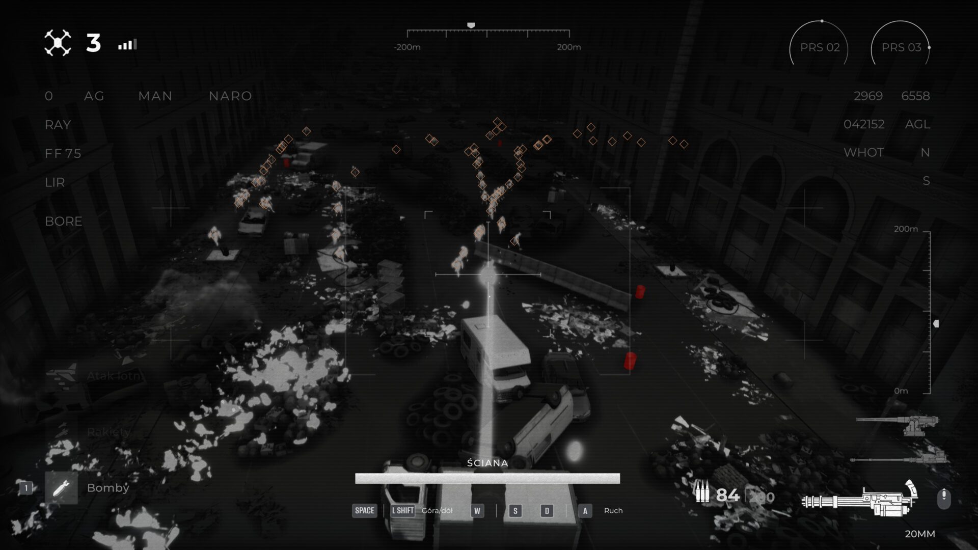 Dużo większym problemem są etapy obrony, które pojawiają się w trakcie gry. Są one kompletnie oderwane od głównej idei rozgrywki i sprawiają wrażenie wrzuconych na siłę. Zamiast podejmowania decyzji i analizowania sytuacji, nagle trafiamy w fragmenty, które bardziej irytują niż bawią. Wybijają z rytmu, nie wnoszą nic ciekawego i psują bardzo dobrze zbudowane tempo gry. To element, który spokojnie mógłby wylecieć, a gra tylko by na tym zyskała. Do tego, pomimo że po bazie chodzą żołnierze, to my możemy strzelać jedynie z drona i nie otrzymamy wsparcia żołnierzy do momentu zakupu odpowiedniego ulepszenia.