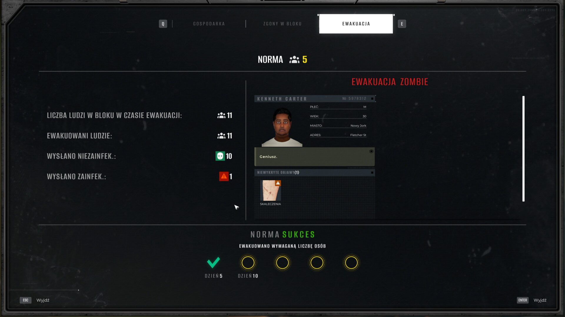 Jednym z największych plusów Quarantine Zone: The Last Check jest liczba i różnorodność mechanik. Gra nie kończy się na prostym „kliknij i zdecyduj”. Z czasem dochodzą nowe narzędzia, nowe procedury i nowe zagrożenia. Musisz balansować pomiędzy bezpieczeństwem a efektywnością, pomiędzy empatią a chłodną kalkulacją. I co ważne – gra bardzo rzadko mówi ci wprost, czy postąpiłeś dobrze. Czasami dowiesz się tego dopiero po kilku dniach, kiedy sytuacja wymknie się spod kontroli. Na ogromny plus zasługuje też humor, który skutecznie ratuje grę przed popadnięciem w totalną depresję. Twórcy doskonale zdawali sobie sprawę z ciężaru tematu, dlatego wrzucili tu masę żartów, absurdów i easter eggów. Postacie potrafią wygadywać kompletne bzdury, dialogi są momentami celowo przerysowane, a niektóre sytuacje wyglądają jak wyjęte z czarnej komedii. To sprawia, że nawet po kilku godzinach gra nie męczy psychicznie, tylko raczej bawi swoją groteską. Ciężko się nie uśmiechnąć, kiedy po konfiskacie topora albo amunicji z plecaka pacjenta, on mówi, że bez tego nie może spać.
