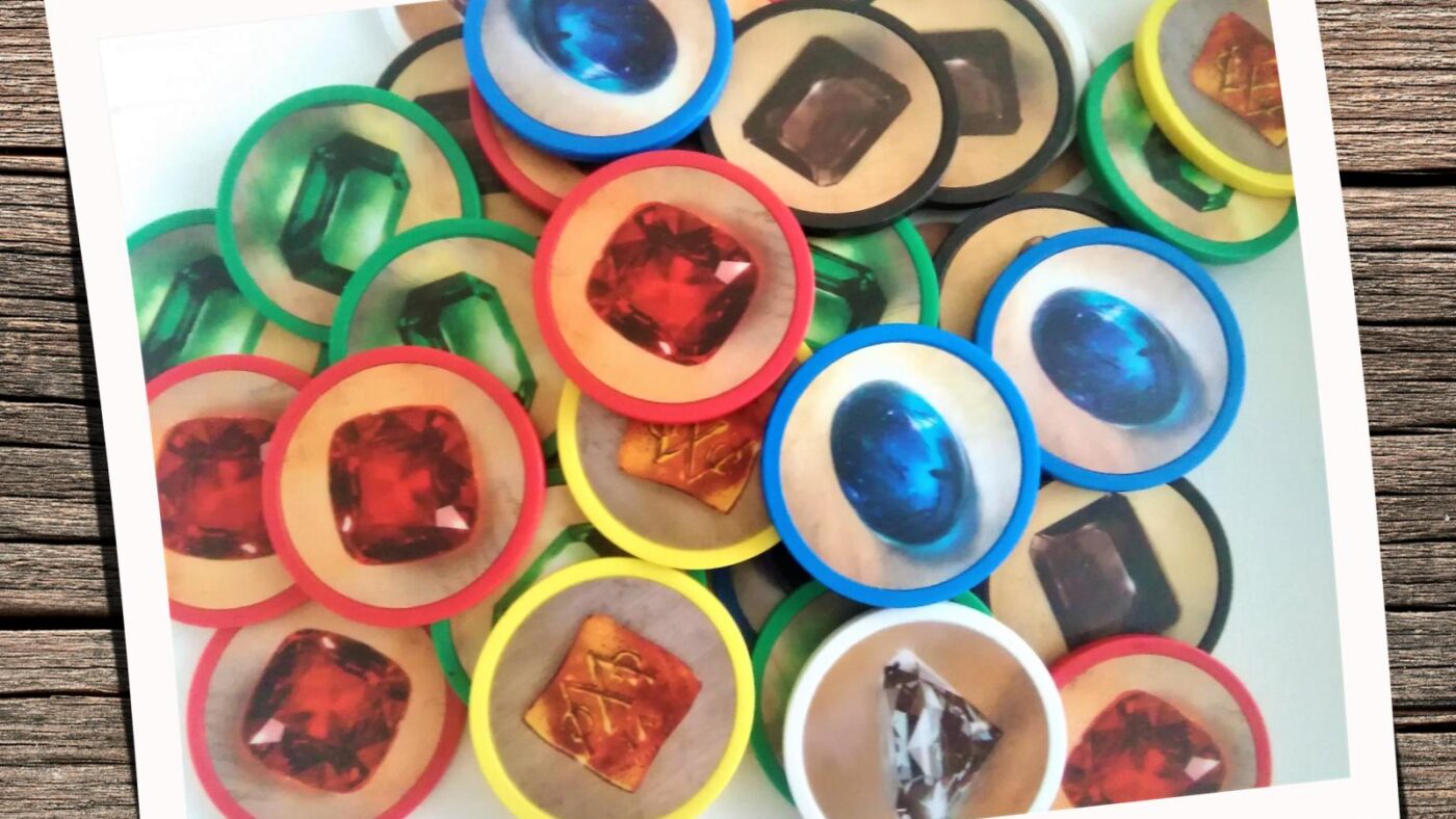 Kilka razy się zastanawiałem czy zamiast znaczników kryształów (czyli surowców) nie lepiej by było dać kamyczki, co chociaż trochę zwiększyłoby klimat. Próbowaliśmy jednak grać w ten sposób, i jednak żetony dużo lepiej się sprawują.