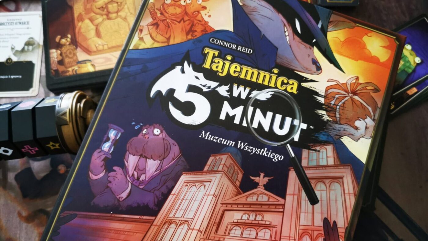 Gra planszowa dla całej rodziny – czy może być coś lepszego? Tajemnica w 5 minut to kooperacyjna planszówka, w której poszukujemy sprawcy tajemniczego włamania do muzeum. Kustosz nas wezwał, ponieważ zniknął niezwykle cenny eksponat, a na miejscu zbrodni pojawiło się mnóstwo dziwnych i niepokojących symboli. Od pierwszych partii z tą grą miałem nostalgiczne wspomnienia z dzieciństwa, gdzie zagrywałem się w Kto to jest! Tutaj również mamy podobny koncept obudowany bardziej nowoczesną stylistyką z kilkoma bajerami, jak, chociażby dziwne urządzenie do oznaczania symboli. Tematycznie gra trafia w gusta wszystkich – mamy dziwne zwierzaki z ludzkimi cechami oraz tajemnicę do rozwiązania.