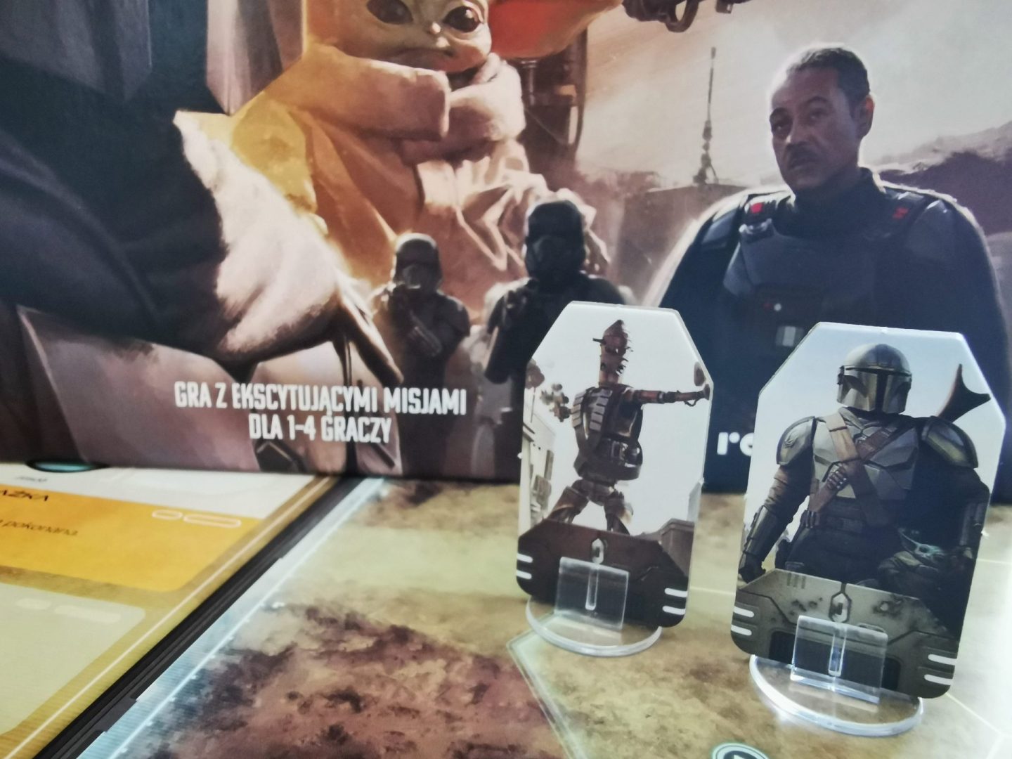 Nie ma figurek. Są standy. Tektura zamiast plastiku. Ale szczerze? W tym przypadku to nie przeszkadza. Projekt graficzny robi robotę, a minimalistyczne podejście wręcz współgra z klimatem Mandalorianina – prostota, która kierowała głównym bohaterem.