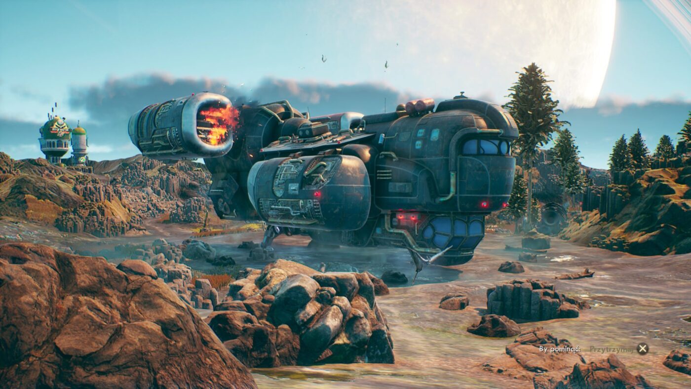 Graficznie The Outer Worlds wygląda cudownie. Gra jest bardzo barwna, planety znacznie się od siebie różnią – mamy kolorową, praktycznie ziemską Terra-2 lub zimną asteroidę Scylla. Odwiedzimy cudowne miasto w chmurach Bizancjum czy też już mniej ziemski, z bardziej pokręconą fauną Monarch. Sprawia to, że bardzo łatwo przystanąć na chwilę w The Outer Worlds i po prostu podziwiać otoczenie. Super sprawa. Technicznie gra nie wygląda dużo lepiej od Fallout 4, może nawet troszkę się zestarzała, ale z drugiej strony według mnie spełnia swoje założenie i po prostu miło się na nią patrzy.