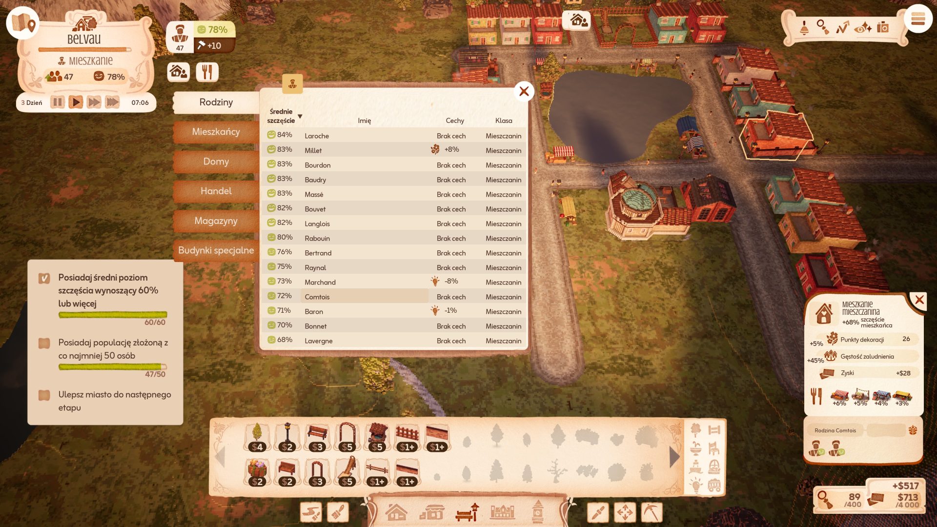 Pierwsze, co rzuca się w oczy, to brak siatki. Tak, w końcu można postawić dom tam, gdzie naprawdę chcesz. Żadnego liczenia kratek, żadnych sztucznych ograniczeń. Po prostu – masz teren, masz pomysł, działaj. To jedna z tych rzeczy, które na papierze brzmią banalnie, ale w praktyce totalnie zmieniają sposób, w jaki myślisz o budowie miasta. Nie chodzi już o idealne rzędy i symetrię, tylko o klimat. O te małe uliczki prowadzące do parku, o skwerek z fontanną i ławeczką, o małe targowisko, które powstało w miejscu, gdzie akurat zrobiło się trochę miejsca. I to wszystko działa.